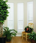 - Style 2: Standard faux wood. White or alabaster color. Basic UV protection. No options. 2-year warranty.